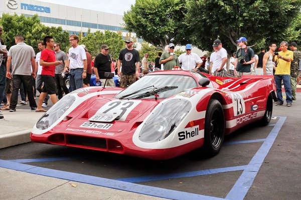300 SL-ből egyébként egy másik is parkol odébb, de az már a későbbi, roadster-kivitel, gyönyörű tejeskávé-színben. Őmellette, a Veyronokon innen találok végre egy igazi érdekességet, egy Porsche 917 versenyautót. Hans Herrmann és Richard Attwood ilyennel nyerte meg az 1970-es Le Mans-i 24 órást, ezt tudom, de hogyan van ezen rendszám? Nem találom a tulajt, pedig fúrja az oldalamat a kíváncsiság. Gyanítom, kiváló replikával van dolgom.
