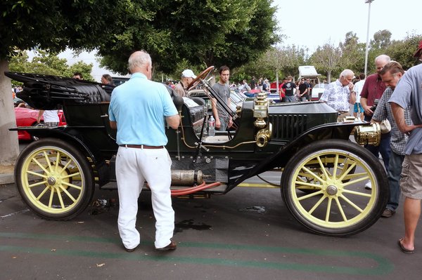 További épített hot-rodok, ritka Ford Ranchero pickup, azaz az El Camino őse, rommá tuningolt Plymouth Barracuda Hemi V8 (az amerikaiaknak csak Hemi Cuda), sokféle korú Mini, VW Bogár-alapú Frazer-Nash replika, Alfa GT-k, Giuliák és Spiderek, Fiat Spider, BMW E3-asok és 02-esek, MG TC, Ford GT-k tucatjával, Lotus Elan, De Soto, megszámolhatatlanul sokféle 911-es, épületnyi, ódon Rolls, ötvenes évekbeli, csőrös pickupok és furgonok, épített, a keréken mérve 552 lóerős Nissan 300ZX és rokonaik között támolygok, már úszik a fejem. Ekkor belebotlok a legnagyobb érdekességbe. Egy gőzautóba, amely már akkor létezett, amikor a Titanic elsüllyedt. Hatalmas tömeg veszi körül.