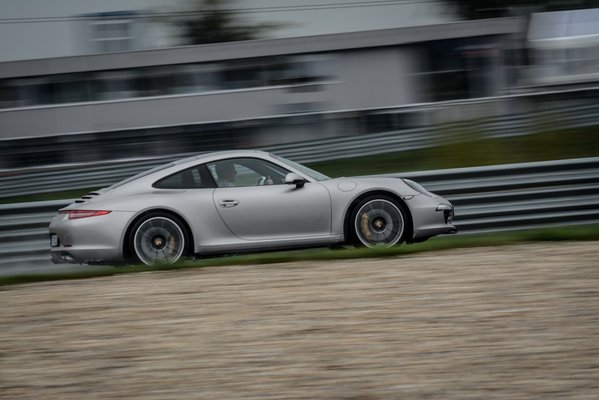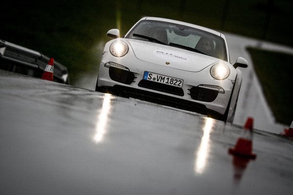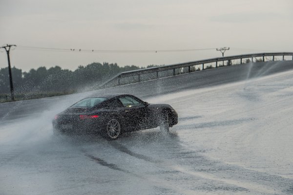 Maga a "drift" egy vízzel locsolt műgyantás vezetéstechnikai pálya körívén zajlott. A hátsókerekes Carrera 2-kel egész jól el lehet kapni a fonalat, és ha nem rúgja túl élesen ki a nehéz fenekét az ember, akkor meglepően klasszul lehet vele játszani. Az összkerék, az más lapra tartozik. Csak nagyon picit szabad ellenkormányozni, mert kiegyenesedik, és állni kell a gázon, különben nem küld nyomatékot hátra. Le lehet győzni, de a fizikai határokon mókázás helyett igazából az összkerékhajtás komputerével kő-papír-ollózunk, aminek más a sportértéke. Hogy kiváló instruktorunkat idézzem: Weissachban 200 mérnök dolgozik azon, hogy a Carrera 4-gyel ne lehessen driftelni. Értik is a munkájukat.