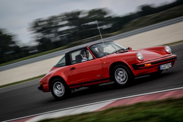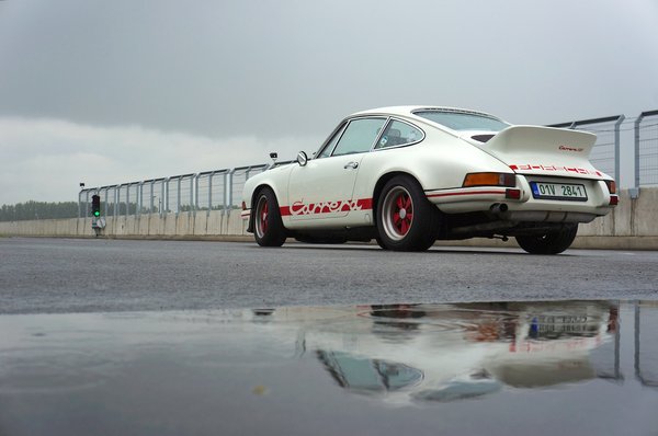 Az első 911-széria motorja apránként hízogatott, ha nem számítjuk a kor olcsójánosainak kínált négyhengeres 912-t. A csúcs egyértelműen a 73-as 2,7 Carrera RS lett, a Kacsafarkú. A nevét a korábban megnyert Carrera Panamericanáról és a Rennsportról, azaz versenysportról kapta. Gruppe 4-es versenyautónak szánták, ezek homologizációjához kellett 500 eladott darab. 1580 készült végül, ezekből vittek az egyikkel. Zuhogó esőben. Ha azt mondják, Kelly Brook dekoltázsában ringhatom végig a Slovakiaringet, az se érdekelt volna jobban. Tényleg tisztelettudó élménykör volt, talán 5000-ig se forgott a 210 lóerős motor. Viszont hallhattam saját füllel a zsíros morgását, érezhettem a minőségi patinaszagot, és boldog voltam.