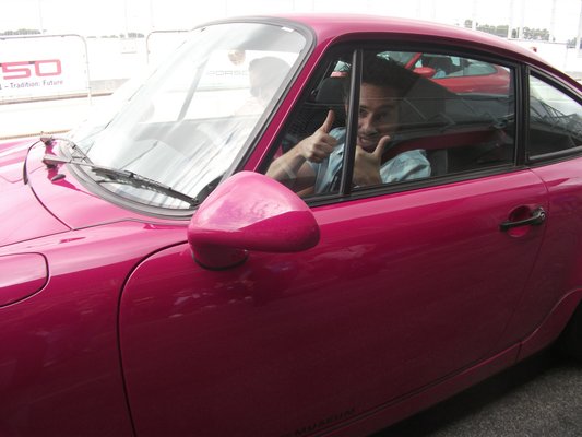 Viszont nem voltam boldog a 964 RS picike sportkormányával a kezemben. A 964 1992-es, azaz szinte modern. A kacsafarkat elektromosan kiemelkedő spoiler váltotta fel, a motor 3,6-os lett, 260 lóval. Végtelenül büszke vagyok, hogy fel merték venni ezt a pajzán pinket a palettára, ebből is látszik, hogy a német autógyártásban kizárólag a Poschénak van humorérzéke. A Schamlippe-rosarot RS gyönyörű. Egészen apró, a kuckónyi belsejét teljesen betölti a dagi motor dörmögése. Ugyanúgy átlósan ülünk benne, mint az ősökben, ha az én első 30 évem múlt volna el ilyen nyomtalanul, nem érném fel a billentyűzetet.