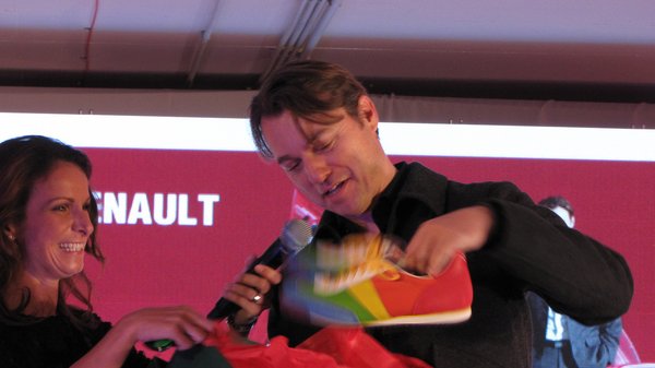 Mintegy mellékesen megjegyezte, hogy bár a margarétán nem szerepel, azért a nagy limuzinokról sem tesznek le, a Laguna utódján dolgoznak, 2016-ra várható, műszakilag a Renault-Nissan-Samsung csapat adja az alapokat. A klubdélután csúcspontja volt, mikor a van den Ackerra rajongó bakfisként pillát rebegtető szlovák Renault-marketinges, Jana Rajcova átadta a helyiek ajándékát, a legósdoboz színvilágú Botas edzőcipőt. Hogy ez az egyébként elég klassz retró csuka leszorítja-e van den Acker személyes kedvencét, az Adidas Superstar modellt a trónról, a legközelebbi sajtóeseményen kiderül.