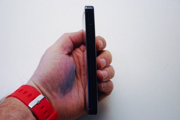 Három kattintás után jött az sms: 37740 forint cserélt gazdát, a telefon pedig elindult Magyarországra. Nagyjából két hét múlva csöngetett a postás. A nagy dobozban kisebb, bizalomgerjesztő doboz lapult gondosan csomagolva. A G3S fizikai felépítése szokatlanul masszív, nem zörög. A hátlap műanyag, de a készülék kerete fém. A gombok sem lötyögnek, határozottan működnek. Kecsesnek nem mondható, mert érezhetően vastagabb, mint a többi 4,5 colos mai telefon. Tömege 160 gramm, annyit nyom, mint két pakli kártya. Szokni kell a méreteit, de valami azt súgja, nem lehet kinyírni pusztán azzal, hogy a farzsebben hagyva véletlenül ráülünk.