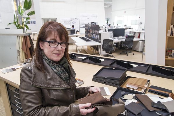 Az irodában nem fotózhatok, de még a formatervezőket sem: túl sok az érzékeny projekt. Utólag kapok fotókat, amiket egyébként ugyanitt készíttetett a cég, csak nyilván többen ellenőrizték, nem marad-e rajta valami érzékeny. Molly Evens-szel gyorsan tisztázzuk, hogy nem annyira a kárpitozás tervezésével foglalkozik, hanem magukkal a színekkel, bármilyen termékkel kapcsolatban. Eredeti végzettsége pszichológus, „a színek nagy részben az észlelésről szólnak, az pedig már pszichológia”. Húsz évig dolgozott a Toyotánál, a belső anyagok, szövetek és bőrök mellett a külső színeken.