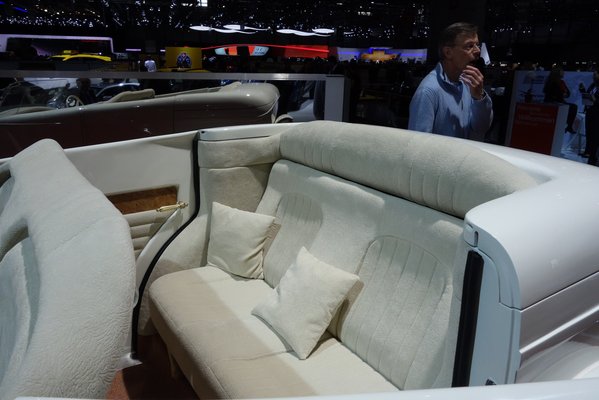Kicsit még elmélázok a szédületesen tömör, leginkább hetvenes évekbeli, óriási amerikai batárokra illő alufelniken, amelyek egy hatméteres Cadillacken arányosak, de egy ilyen méretű autó alatt, mint a Sbarro Event, elvesznek, ingatom a fejem, amikor meglátom a motorházfedél túloldalán, hogy behelyezik az oldalsó rácsot – miért kellett ezt, megvonják az impozáns alufólia-blokk látványát a pórnéptől? Szemetek.