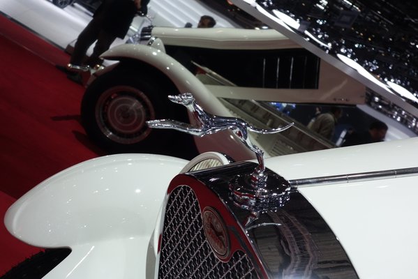 Egy kis Duesenberg itt, Bogár amott, majd a Lamparttól Lamborghiniig terjedő ív hátán a kocsi orrához csusszanunk. Nos, mi hiányzik még a képletből? Úgy bizony, a Bugatti. És hogy a legkönnyebb Bugattit fabrikálni? Patkó alakú maszkkal. Ki gondolta úgy, hogy Sbarróék kihagyják ezt a ziccert? Leülhetsz fiam, egyes. De legalább értékeld a kutyust, milyen szépen szökken, egy kicsit szarvasabb lenne, már Volgának nézném.