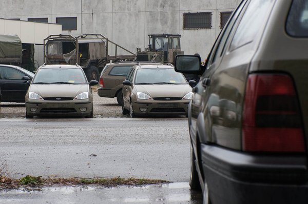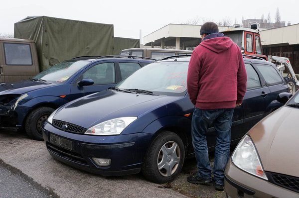 Miközben a működőképes matt zöld Focusok 850 euróért kelnek el sorban, gyors fejszámolást végzek: 320 ezer a Dorotheumnak, 20 a hazaszállítás, ha kis fogyasztású autónk vagy saját trélerünk van, 150 a regadó, ha jól tudom, hogy Euro 2-es, és még legalább 60-70 a forgalomba helyezés, illetve a műszaki vizsga. Ez alsó hangon 550 ezer magyar forint egy közepesen leütött, kicsit rozsdás ex-katonai Fordért, és akkor nagyon feszesen számoltam, valamint nem kellett meghúzni egy csavart sem az autón. Nem kell sokkal többet fizetni egy hasonló civil Focusért sem. Igaz, a harci festésű Fordokban gyakorlatilag garantált a kilométer, de mást nem tudunk az állapotukról.