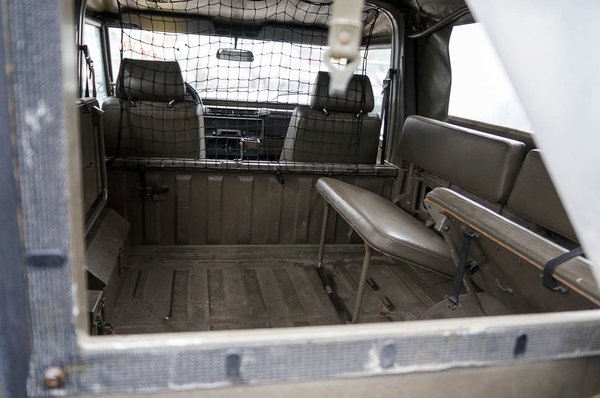 Csak ezek nem hamvas leánykák. A G Puchok nem holmi zárolt, zsírban tartott, nullkilométeres gépek, hanem leharcolt, leselejtezett, rozsdás, lyukas vasak. Ráadásul olyan kivitelben, amelyre nem csak költői túlzással mondjuk, hogy slaggal mosható. Csővázas műbőr ülés, kárpit nincs, a padlóban lefolyó. És persze teli ponyva, még a sofőrszék fölött is. Vadászautónak is zord - vajon mennyit adnak értük?