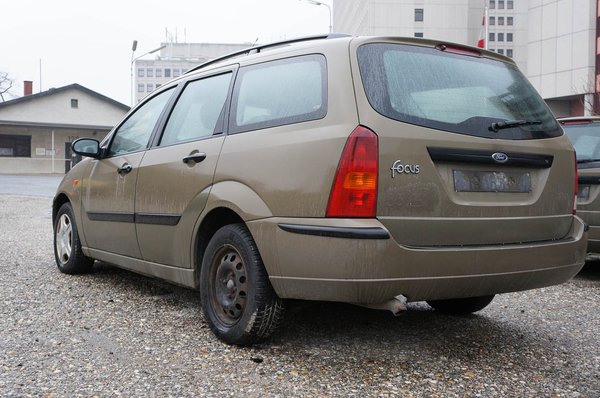 Itt vannak végre a kedvenc rejtőszínű Focusaim. Állapotuk annyira egyöntetű, hogy még a pörsenések alakja is megegyezik a sárvédők alján. Mindegyik úgy kétszázezer harcos kilométert tudhat maga mögött, a felnik rozsdásak, a féktárcsák is, egy-két elemet meg újra fújtak, végül majdnem eltalálták a színt. Volt idő, amikor szívesen beleültem volna egy ilyenbe, ha mondjuk fele annyiért adták volna, mint a polgári testvéreit. De nem sokkal olcsóbbak ezek itthon, pedig így közelről szemlélgetve nem templomba járásra használták vidéki orvos házaspárok. Ajtót nyitogatni itt sem lehet, a megtekintés külső szemrevételezésre korlátozódik.
