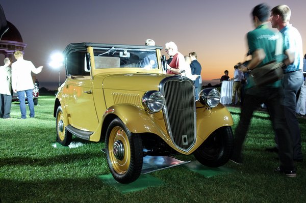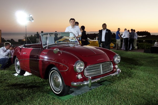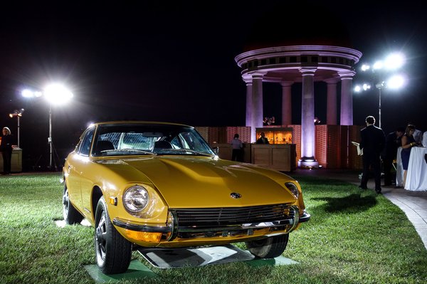 Eddig a pázsiton álló, ügyetlen, vén autókról beszéltem, de volt azon a vacsorán más, igazán érdekes kocsi is. Például kiállítottak egy kabriót, amely úgy nézett ki, mint amikor egy gömbölyű Wartburgnak kétoldalról nekihajtanak bulldózerekkel, majd levágják a tetejét. A bordó autót úgy hívták: Datsun Fairlady 1200, és aki egy kicsit jártas a belpiacos japán elnevezésekben, azonnal rávágja: a 240Z-370Z széria ősét látjuk itt.