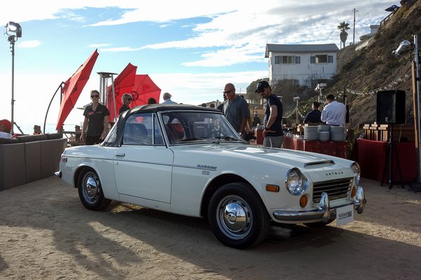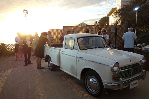 A Crystal Cove nevű, lepukkant halászfaluból lassanként ismert turistahellyé előlépő tengerparti falucska homokos dűnéjén, a buli helyszínén két érdekes veteránt is letámasztott nekünk. Egyik egy 1965-ös Datsun L320-as pickup volt, ennek a platójáról mérték az összes üdítőt és sört, amit ihattunk – sajnos boros autó nem volt, így nekem az álló söntést kellett látogatnom...