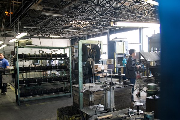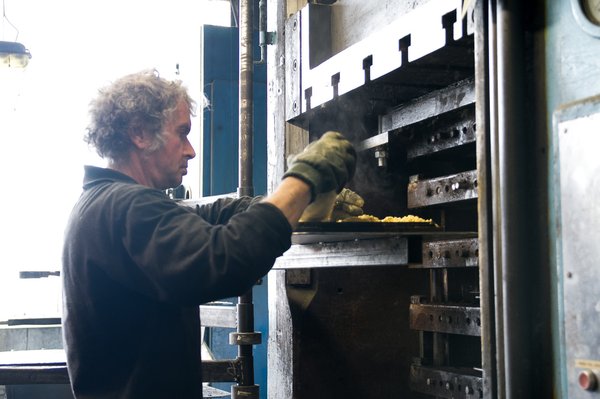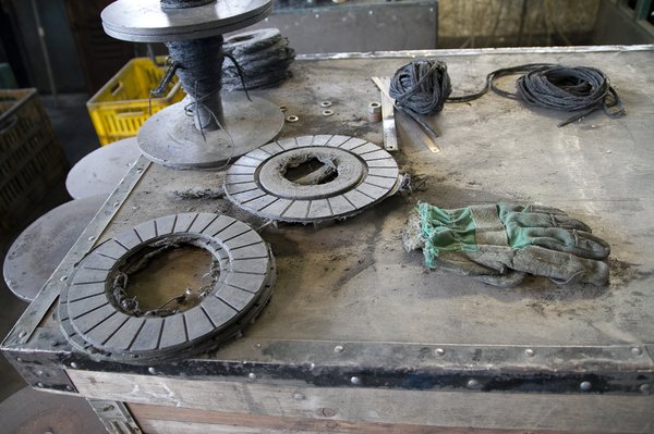 A kuplungtárcsákon használt szerves szálakat egy időben kókuszháncsból állították elő, később áttértek a bangladesi jutára, melyet önök a lábtörlő alapanyagaként is ismerhetnek. A háncsból vastag kenderszálakat fonnak, kötőanyaggal itatják át egy kádban, majd az egészet bevezetik egy kemencébe. A gépsor túlsó végén feltekerik újra az egészet, ebből metszenek megfelelő darabokat a kuplungokhoz. A gépet az irodán dolgozó Mariann nevű titkárnőről nevezték el. Állítólag épp olyan kedves a kollektívának, mint anno a dekoratív titkárnő. A furcsa összefonódás itt, Budapest legörömtelenebb vidékén engem az Egészséges erotika című filmre emlékeztet, de lehet, hogy csak a szürkeárnyalatos környezet teszi.