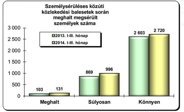 Mindezekre is nagy szükség volna, mert Magyarországon jelentősen nőtt a közlekedési balesetek száma, az elmúlt év első három hónapjához képest. A hivatalos magyarázat az, hogy az enyhe tél miatt kevésbé voltak óvatosak az autósok és ez okozta a romlást. Kilencvenöt helyett százhuszonegy halálos baleset történt, ebben a kategóriában romlott a legtöbbet a helyzet, de súlyos és könnyű sérüléssel járó balesetből is több történt. Itthon a legfőbb baleseti okként még mindig az elsőbbség meg nem adását említik, a második helyen az abszolút és relatív gyorshajtás, a harmadik helyen a kanyarodási szabályok megszegése áll.
