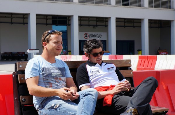 Nir, az izraeli kolléga terepjárókra szakosodott, ami jó, mert így nála sincs semmi, amit hasznosítani tudna. Életében nem ült még kemény sportautóban, de van benne indíttatás. Úgy a huszadik kör tájékán ő megy előttem, Timót követi. Vonatozgatunk. Mögöttem egy litván srác, akinek a neve most mindegy, de az a fajta, akin a porschés ünneplő póló már akkor pillangófoltos volt, amikor bepréselte magát a Gulf-mintás Carrerába. Arca hófehér, OMP vezetőcipős lábát a fékpedálon pihenteti, és több kanyarban úgy zuhan be mellém, mintha versenyeznénk.