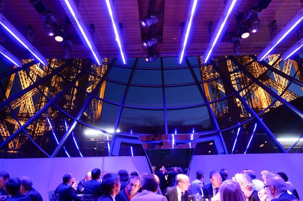 Vissza a szállóba, volt fél óránk zuhanyozni, öltönyt húzni, mentünk a vacsorára, amihez nem volt sok kedvem, mert a korai indulás miatt sikerült megint három és fél órát aludnom, emiatt alig tudtam már nyitva tartani a szemem. Aztán mégis jól felébredtem. Lehet, hogy ez volt a COTY-csapat utolsó meghívásos vacsorája, de talán a legszuperebb is az ilyen vacsorák történetében. A helyszín ugyanis az Eiffel-torony első emeleti kilátójának panorámaablakos étterme volt. Ezt azért nem gondoltam volna, hogy egyszer itt ropog majd a fogam alatt a foie gras-val megrakott minikréker.