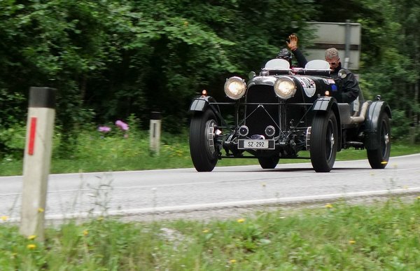 Ezek a rémesen régi vasak szinte rajtunk ütöttek, ahogy a Gesäuse nemzeti park szélén futó út mellett, egy restiben vártuk már vagy másfél órás lesben a mezőnyt. A pincérnőt kérdeztük, mikor jönnek a kocsik, de ő semmit sem tudott az egész rendezvényről. Azt láttam az arcán, hogy nem is igazán érdeklik az ilyen zajos, biciklikerekeken guruló, büdös vasak. Képzelhetik, mennyire meg voltam vadulva, amikor már harmadszor sürgettem meg a számlát és nem jött, hogy felharsant a moraj, majd egy lokomotívszerű izé eldübörgött a parkolót az úttól elválasztó sövény mögött.