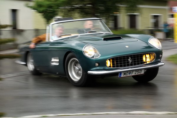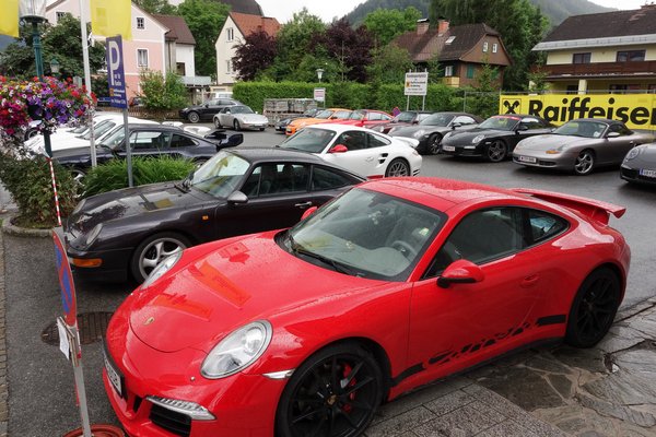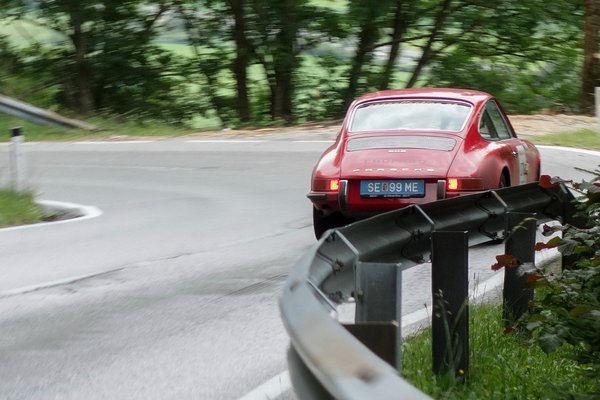 Szemerkél az eső, de rajtam a szuper vízálló motoros ruha, fejemen a felhajtható állú sisak, az út szélén álló bámészkodókhoz képesti, korábbi hendikepem, hogy ennyire be vagyok öltözve, hirtelen behozhatatlan előnnyé válik. Ezernyi Porsche 356-os zúz el gépem előtt, vannak köztük nagyon koraiak, nagyon négyvezértengelyes, Fuhrmann-motorosak, aztán a 911-esek és deriváltjaik, közéjük szúrva Ferrarik, Lotusok, Alfák.