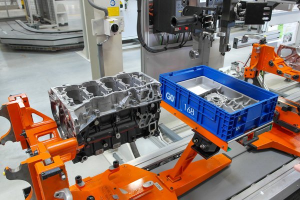 Mivel nálunk olcsóbb a munkaerő, a motorgyártásban viszonylag magasabb az élőmunka aránya. Az egyes motorok egy kis kocsin mennek munkaállomásról munkaállomásra – de nincsenek egyedül. A kocsin ugyanis utazik velük egy műanyag láda, a hozzájuk előkészített alkatrészekkel – ez kit-rendszernek hívják. Csak néhány nagyobb részegységet (mint a főtengely, vagy az előszerelt turbót a leömlővel) pakolnak a motorra a sor melletti készletből, a legtöbb kis alkatrész a ládából kerül fel rá. Még gondolkodni sem kell a munkásnak, esélye sincs tévedni.