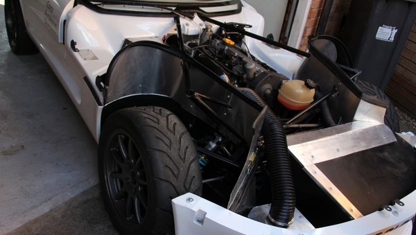 Persze ez is törötten került a mostani gazdájához, a gyárból rendelték meg a szükséges váznyúlványokat, csődarabokat az újjáépítéshez. Ebből az autóból hamarosan kikerül a szériamotor, és a helyére egy szintén Rover-alapú négyhengeres jön, amiről annyit árult el a tulajdonos, hogy háromszáz lóerő körülre számít. A gyáriak 115-230 lóerő közöttiek voltak. A leggyengébbikkel is 6.4 alatt van százon, és 190 a vége. Hihető adatok, mert a súlya nem éri el a 650 kilót, vagyis olyan könnyű, mint egy Trabant.