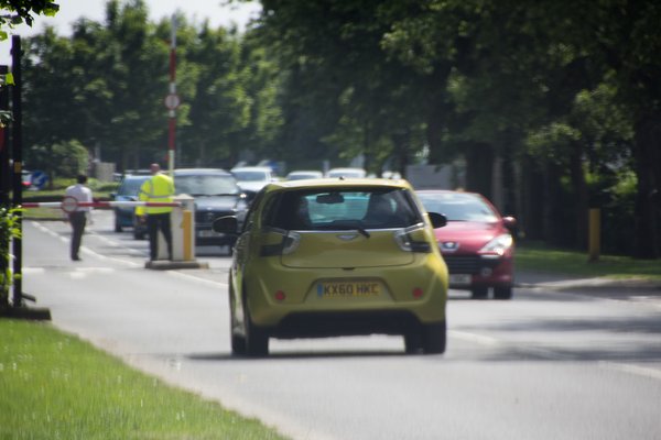 Ezt még azzal tudtam fokozni, hogy már csak a hatás miatt is megemlítettem, hogy autós újságírók vagyunk – hiába, néha az ember minden ok nélkül igyekszik a végsőkig feszíteni a húrt. Erre csak annyit mondott, menjünk csak ki a körforgalomhoz, vagy a Banbury Roadra, az már tényleg public road, ott nyugodtan fotózhatunk, nagyon sok prototípust tesztelnek errefelé, a szomszédban van a Jaguar-Land Rover fejlesztőközpontja is. És jó utat meg kellemes szórakozást kívánt, visszapattant a szolgálati járművébe és elviharzott. Hátulról úgy látszott, mintha a fejét rázná, talán meg a térdét is csapkodta, de ebben már nem vagyok biztos.