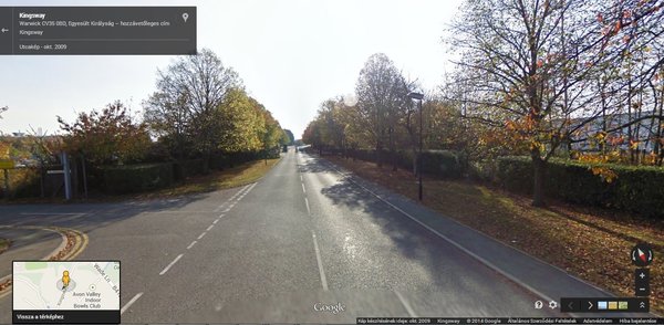 A nagy kémkedésben viszont túlfutottunk a kereszteződésen, vissza kellett fordulni. És aztán rossz helyen kanyarodtunk be. Isten bizony, nem szándékosan tettünk így. Ugyanis olyan irányítószám alapján navigáltunk, amit a haver mondott, márpedig itt Nagy-Britanniában szinte utca-házszám pontossággal lehet irányítószám alapján címre repülni. Csak hát, rossz volt az az irányítószám. Direkt úgy álltam meg, hogy bárhonnan is érkezik emberünk, észrevegyük, s ő is észrevegyen minket. Velünk szemben sorompó, láthatósági kabátos biztonsági őrök, talán még valahol az Aston Martin feliratot is láttam. A Street View-n meg tudom mutatni, a Kingsway melyik pontján álltunk.
