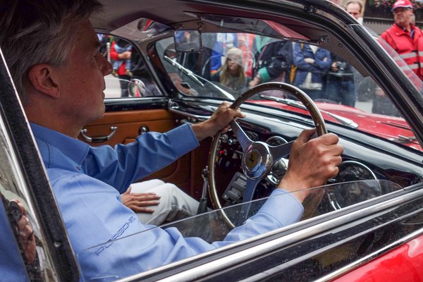 Már a listában kiszúrtam az autót – Kougar. Nem Mercury, olyan a Winklernek van, de azt nem úgy írják. Ez valami régi. Nyitott. Aztán láttam élőben. Lehidaltam. Tisztára, mint az ötvenes évek végi Ferrari 250 Testa Rossák. Csattogtattam rá vadul, nem kímélve a zárat, van itthon Sony szerviz az RX100-ashoz. Majd elkaptam az embert – akit Reinhard Weinstablnek hívnak, és osztrák – a volán mögött. Kicsit beszélt angolul, én kicsit németül. Eszmét cseréltünk. Hogy mennyire dögös a kocsija. Hogy milyen jó a hangja. Hogy mi is ez?