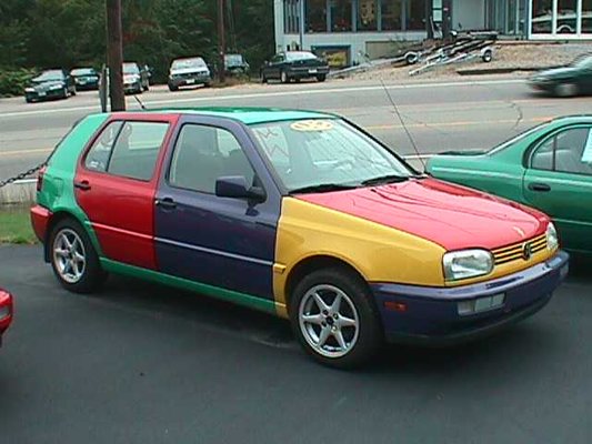A kicsit hibbant III-as viszont nagyközönség számára is elérhető volt, és jóval nagyobb mennyiségben. Ferdinand Piech neve ismerős lehet a nagyra törő tervekről, ám még mielőtt Bugatti Veyronokat álmodott volna, 1995-ben kitalálta a Polo Harlequint. A mezei Polo minden karosszériaelemét más színűre fényeztek. A vezetőség nem bízott a sikerben, ezért kezdetben csak ezer darab készült, ám a váratlan népszerűség hatására ezt megtoldották még 3800 példánnyal. És ha egy üzlet egyszer beindul... Az 1996-os modellévben 264 darab Golf GL Harlequin gördült ki a mexikói összeszerelő üzemből. Harlequin-tulajdonosoknak a leggyakrabban azt a kérdést teszik fel, hogy milyen színt jegyeztek be a forgalmiba. Ha véletlen belebotlunk egy példányba, akkor a C-oszlopot és a tetőt érdemes megnézni, ez lesz a hivatalos árnyalat. Akármennyire is kuszának tűnnek az összeállítások, egy autón sem látni olyat, hogy két egyforma szín érintené egymást.