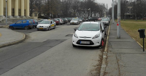 Nem csak a Vitézy-királyság írt, jöttek további esetek is. Gábor egy kisebb magánháború végén tart éppen, mert természetesen Magyarországon nem egyedi eset, hogy lekopott, vagy soha nem is létezett felfestések miatt szórják a csekkeket és kerékbilincseket. A meg nem büntetett autósok száma nem jelenik meg az eredményességi mutatókban. Tavaly februárban, a nyolcadik kerületben, a Rezső téri templom előtt tettek kerékbilincset Gábor autójára. Ebben a kerületben az a legjobb, hogy akinek szerencséje van, olyan helyen autózhat, ahol minden felfestés és tábla a helyén van, így pontosan látható, hová parkolhat, ha nem akar büntetést. A Rezső tér viszont csapda.