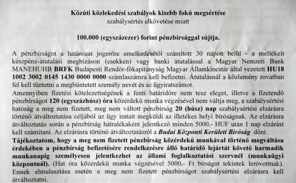 A magyar jogrendszer ezt a pénzbehajtási trükköt úgy valósítja meg, hogy a helyszíni bírság összege fix ötvenezer, ha feljelentés lesz belőle, százezer. Szarkazmusból fődíjat adnék annak, akinek volt arca a határozatot közúti közlekedési szabályok kisebb fokú megsértéseként megcímezni.