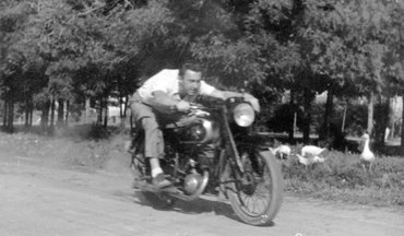 A katonai felmentést is a tangóharmonikának köszönhette, sok hírességet, köztük Karády Katalint kísérte, szvinget játszott és persze autózott, amíg csak lehetett. De a háború elvitte az Adlert. Hiába falazták be a Hutyra Ferenc utcai garázsban, amikor az ostrom után elment érte, kiderült, már megelőzték. Így életében először motorkerékpárra ült, mert menni, játszani kellett. Először egy szóló DKW, aztán egy 500-as JAP-motorral hajtott oldalkocsis gép lett a szállítóeszköz.