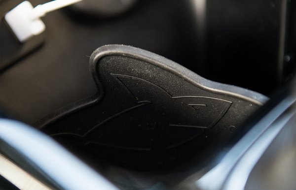 - Viszont itt, a középkonzolban van egy... valami rajzfilmfigura, azt hiszem. De ahogy látom, nem ebben a felszereltségben. (Utólag megnéztem: legyenek erősek, az italtartó gumipánton tényleg van egy... na micsoda: ugyanaz a cápa!)