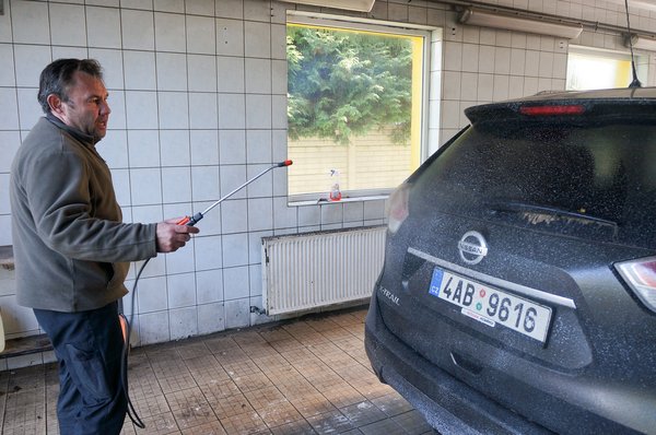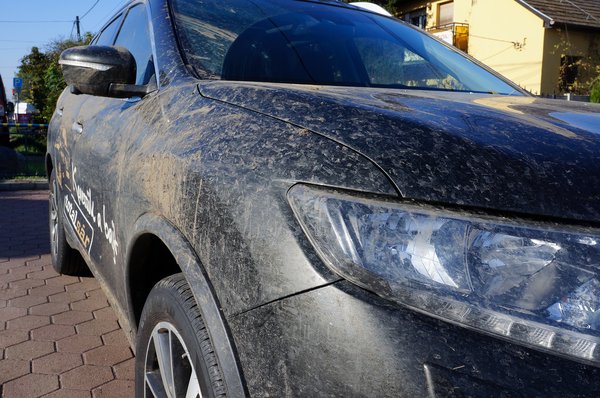 Egyszerre négyen láttak munkához, miután valaki bepermetezte a karosszériát a szennyoldó keverékkel. A fel nem oldott koszt a habos szivacsos mosás csak elkenné, ráadásul ha kvarcszemcsék is vannak a sárban, az újabb karcokat ejt. Egy ennyire koszos autót nem tanácsos körkefés automata mosóba vinni, mert a gép nem tesz különbséget utcai porral szennyezett és autók és a durván összesarazott terepjárók közt. Sok vízre és türelemre volt szükség, a teljes mosás nagyjából fél órán át zajlott, ez a városi kosszal érkező autókra szánt idő kétszerese.