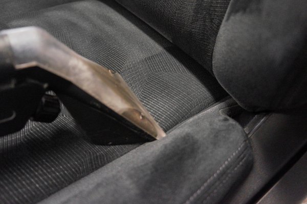 Az enyhén csíkos mintázatú szövetek mélyen porosak voltak, illetve a vezetőülés ülőlapjában ott virított a csokifolt, melyet magam dörgöltem bele véletlenül egy beszálláskor. A porszívózás a gőztisztítóval fellazította a kárpitozásba ivódott koszt, így kijönnek a szagok is. Vegyszert ebben a fázisban nem kell használni.