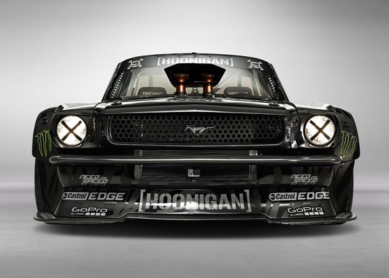 Ha nem is tarthat számot a leggyorsabb Mustang címére, a Gymkhana 7-esben szereplő Ford igazi szörnyeteg. A motorja egy 6,7 literes Roush Yates V8, ami 845 lóerős, a csúcsnyomatéka pedig 975 Nm. Nem csoda, hogy hatalmas sárvédő-kivágások és arasznyi sárvédő-szélesítések kellettek a teljesítményt átvinni képes Pirelli Trofeo R gumihengerek betakarásához. Ráadásul még összkerék-hajtást is építettek a Mustang alá, hogy a teljesítmény ellenére ne váljon irányíthatatlanná az autó – meg hogy Ken Block is el tudja vezetni, aki nem szokott a hátsókerék-hajtáshoz.