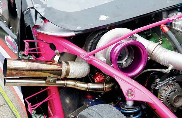 Úgy tűnik egyébként, hogy a négyhengeres dízelmotor blokkja a gyári pick-upból érkezett, a 2,5 literes gépből azonban nem a gyári 163 lóerő jön ki, a képeken az is látható, miért. Hatalmas turbófeltöltőt szereltek rá, így rendes gyorsulási versenyautó-motor lett. A teljesítményét legfeljebb saccolni mernénk, de 400 lóerőnél biztosan több. Az autót persze teljesen átépítették, de úgy néz ki, a motoron kívül az utascella is a gyári – legalábbis a keretét adó elemek, mert belül nyomokban sem emlékeztet utcai pick-upra.