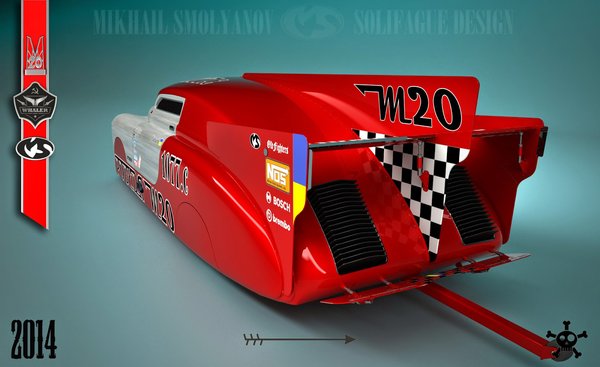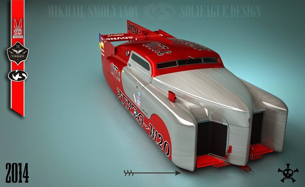 A Pobjeda M20, amelyet 1949 és 1958 között gyártottak a GAZ autógyárban, Magyarországon akár a diktatúra jelképe is lehetett volna: a Volga elődje feketében talán még most is félelmetes látvány sokak számára, hisz 1956 előtt nagyrészt az ÁVO flottája is ilyenekből állt. Mihail Szmoljanov, egy orosz formatervező azonban egész más színben tünteti fel a vén orosz járművet: úgy alkították át, ahogy a Bonneville Speed Week sebességrekorder autóit szokás.
