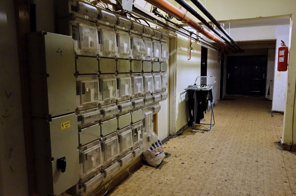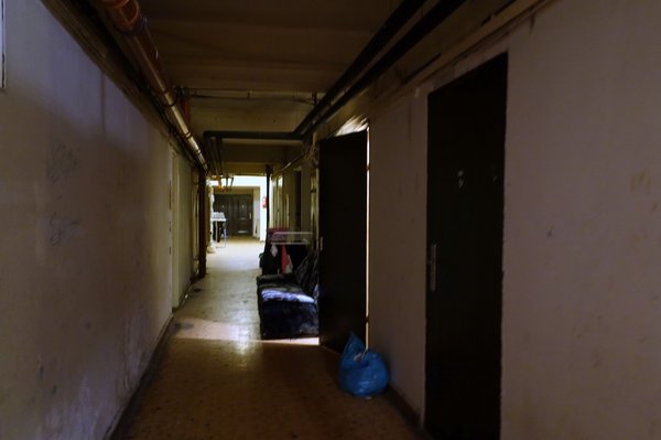 Az ötödik emeleten fényfüzérekkel díszítettek fel egy teraszt. Itt nem törött a korlát dróthálós üvegezése. Messziről valódi otthonnak tűnik a sok, egyenként tizenhét négyzetméteres, esetleg faláttöréssel duplázott egykori szállószoba közt. Képtelenség eldönteni, hol vannak éppen otthon és hol nem. A villanyfény vagy a sötét néha csupán annyit jelez, hogy a lakók feltöltötték-e az előre fizetős villanyórát vagy együtt kelnek és fekszenek a nappal. 2009-ben 46 millió forint adóssága volt a háznak, amiből elege lett az összes közműcégnek, és sorra kapcsolták le a szolgáltatásokat. Most a kártyás megoldással próbálkoznak, ez működni látszik.