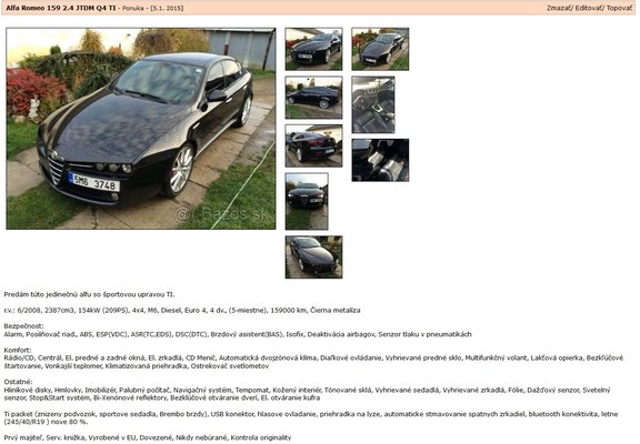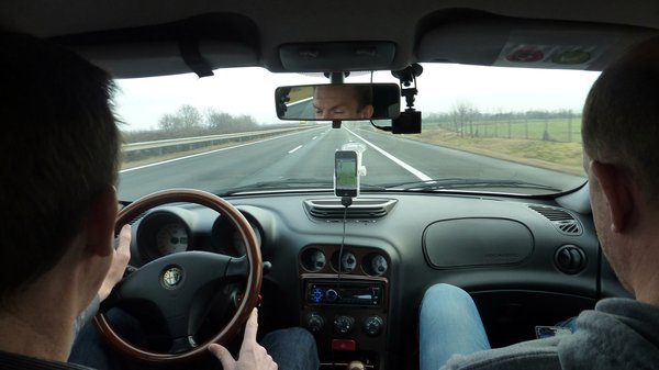 Zsolt alfás. Megértem, szereti, elégedetten használja első szériás 156-osát. 2.4 JTD, az erős öthengeres. Tudja, mivel jár az Alfa-tartás, elégedett, passzív házak gépészetével foglalkozik, nem egy hebrencs, ideges fajta. Mostanra azonban a 156-os lassan átcsúszik a melósautó státuszba, öreg már, és a több mint 420 ezer hazai kilométer nem múlt el rajta nyomtalanul. Ettől függetlenül a motorja soha nem volt megbontva. Kopó-fogyó alkatrészeket kért, és a mai napig csendesen, kulturáltan jár, erős, szép, öthengeres hanggal. Na, ezzel az 56-ossal indulunk Gödöllőről Szlovákiába. Mert Zsolt egy 159 2.4 JTD 4x4-et szeretne, TI-kivitelt, kézi váltóval, 2008 utánit. Nincs belőle sok, ez pedig képeken szépnek tűnik. Egy megnézést mindenképpen megér.