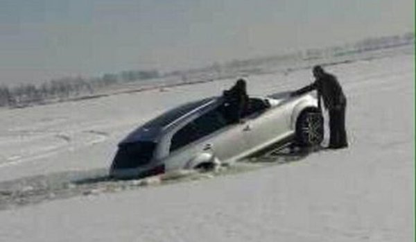 A képeken úgy néz ki, más, könnyebb autók beljebb is merészkedtek a jégpáncélon, baj nélkül. Lehet, hogy az Audi sofőrjét csak a szerencséje hagyta cserben, de valószínűbb, hogy az autó tömege fogott ki rajta. A Q7-es ugyanis úgy 2,2 tonna üresen is, míg a háttérben látható kompakt szedán valószínűleg csak fele ennyit nyom. A szemtanúk szerint végül senkinek nem történt baja, de az autó mintegy öt perc alatt megtelt vízzel, és elsüllyedt. Hárman hagyták el sietve, egy férfi, egy nő és egy gyerek, nekik az ijedtségen kívül más bajuk nem esett.
