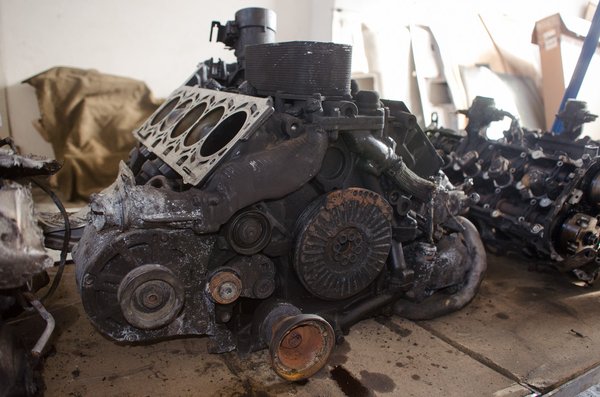 Rengeteg az érdeklődő, de az igazán komoly telefonok a papírok miatt jönnek. Ilyen üzletekre Tibor sosem hajlana, no, meg papír sincs, ugye. Azért a bizonyos fékszettért ajánlottak már 250 ezer forintot, MTZ traktort, de nem adta. Most nem is baj, ha itt van még egy ideig a roncs, aztán ha lecseng a felhajtás, bevizsgáljuk, és eladjuk belőle, amit tudunk. Merthogy nem kizárt, hogy lesz min kaszálni. A hengerfejek már lent, a hengertömb, a dugattyúk és a főtengely a vártnál jobb állapotban vannak. A motoron lévő műanyagok, a kábelek, a kevlár mind leolvadtak. Először nem is tudtuk, hogyan nyissuk fel, aztán egy kollégám targoncával belekapaszkodott a műanyagokba, és a villájával egyben leszedett róla mindent – meséli a praktikákat. A módszer durvának tűnhet, de nem kizárt, hogy 5,2 literes, győri V10-es tényleg menthető. Ha a becsapódásnál nem deformálódott, a vastag, hőpajzsként funkcionált olvadék miatt talán megúszta az öntvény. Muszáj lesz alaposan megnéznie egy szakembernek, de kétesélyes a helyzet – reménykedik Tibor.