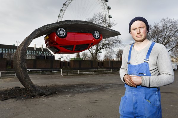 A fejjel lefelé lógó Vauxhall Corsa február 25-ig látható Londonban, tehát aki meg szeretné csodálni, jobb, ha siet.