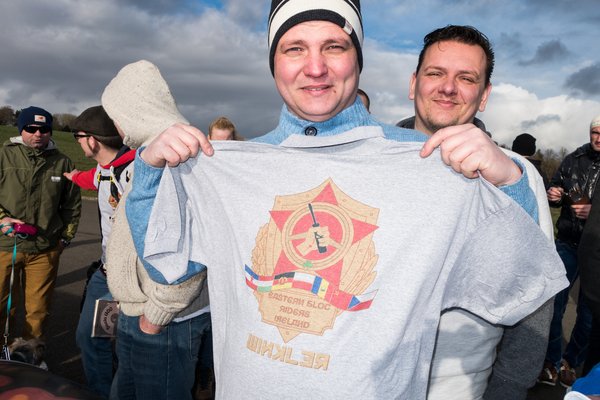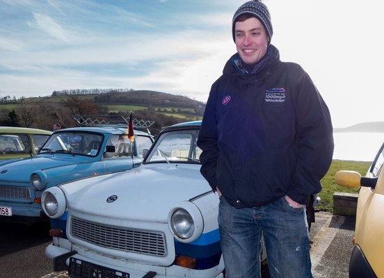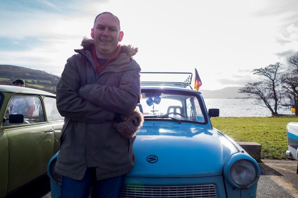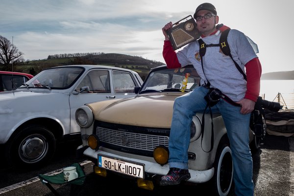 Végül két és fél óra késéssel megérkeztünk, tényleg volt ugrálóvár, vagy száz ember, érdekes autók, emberek, akiket jobbára csak trollnevükön ismerünk, marhapörkölt és ír gulyás. Trabis Bandi eladó egy Sparban, nyolc éve él Limerickben, és még mindig számon tartja, hogy édesapja 1983-ban vette első Trabantjukat. Egy jobb Trabant manapság nálunk 150-200 ezer forint, a tréler Írországig 5-600 euró. Háztól házig 1200 euróból megáll. A papírozás egyszerű, mert az ír okmányirodában úgy néznek a trabantosra, mintha ufóval közlekedne, és lássuk be, igazuk is van. Viszont 30 éves kortól veteránnak számít az autó, nincs sanzonbizottság, mint nálunk, aki az eredeti könyöklőket és lengőkarokat kajtatná, nehogy véletlenül jól járjon egy öregautós. Tehát ennyi, plusz be kell lépni egy veterános klubba, ami az itteni magyarok esetében leginkább a Nenagh Classic Car Club, ezen belül működik az Eastern Bloc Riders. Utóbbiról mondhatnánk, hogy ez a magyar szekció, de nem: van már ír klubtag is, Cían, aki egy kék Trabanttal jött, saját bevallása szerint őszinte állapotban. Az Eastern Bloc Riders egyébként már odáig jutott, hogy még a júniusi nagy találkozójuk előtt májusban megrendezik Írország első veterán challenge rallyját – eldugott cuccokat kell koordináták alapján megtalálni.