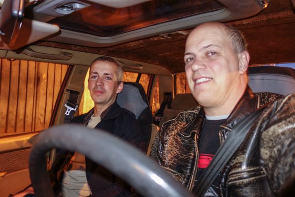 Úton vagyunk Zsolttal, aki eddig nem adta át az autó volánját, de így is beszéltük meg. Kétszer állítottunk a nagy dízelmotor adagolóján, hogy több anyagot kapjon a gép, de ne fulladjanak meg a mögöttünk jövők, szóval minden a terv szerint.
