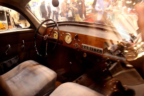 Az osztrák Kurt C. Volkhart akkor úgy gondolta, érdemes lenne elkészíteni a KdF-Wagen nagyobb sebességre képes, gazdagabb kivitelű változatát, s a Sagittával igazi sorozatgyártást tervezett. Az, hogy a szenzációs, 0,219-es alaktényezőjű autó elterjedését eltüsszentette a francba a világháború végkifejlete, semmit nem von le az értékéből. Pedig az elég magas lehet, ismerve a VW-fanatikusok pénzköltési szokásait – azt sajnos nem tudom, hogy elkelt-e a kiállításon. Mindenesetre működni működik, mert amikor a szalon bezárása után Zách Danival még másfél órát álldogáltunk a felüljárón, figyelve a távozó autókat, a Sagitta is ott dörmögött tova a lábunk alatt.