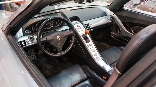 Ugyanitt, a pörölycápa mögött egy Porsche Carrera GT lapult, ez már egy kicsit fantáziadúsabb találat. A Porsche sokkal inkább versenyorientált, szénszálas monocoque vázzal készült, mint egy vérbeli versenyautó. Eleve sokkal kompaktabb, ráadásul a motorja nem feltöltött, hanem pörgős, V10-es szívó, és kéttárcsás kérámiakuplunghoz kapcsolódó hatos kéziváltó tartozik hozzá, amit a Porsche ma már rengeteg modelljéhez kínál.