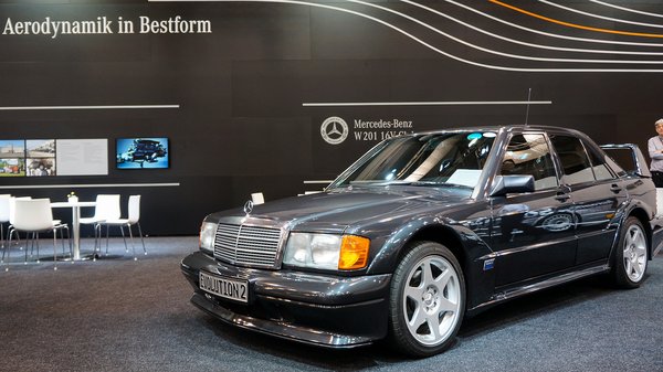 Nem csak nagyon nagyban, nagyon sok pénzért lehet belépni a hobbiautózás ajtaján. A Mercedesnél már szinte elegünk volt a régi 300 SL-ek látványától, mert ilyen autóból a kiállítás összes négyszögölére jutott átlagosan 0,5 darab. Egy végig garázsos W124-es Mercedes, egy 190 Evolution, megőrzött, nem felújított állapotban, na az már igen. Egy ilyen autó még 300 ezer kilométer után is jól mutatja, Stuttgartban valahonnan valahová tartanak, nem ma kezdték. Kis odafigyeléssel nem csak a nappaliban tartott példányok maradnak fittek, de ezek a sokat futott autók is.