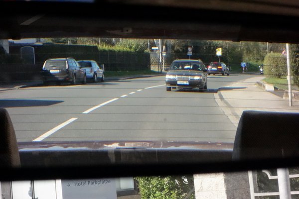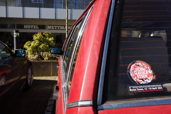 Igazából – a németek is bírták. Egy olyan helyre, mint az esseni veteránkiállítás, sokkal stílusosabb egy mégoly kopottas és összevissza színű öreg Volvóval érkezni, mint egy 7-es Golffal, és esküszöm, nem a szánalom sütött az emberek szeméből, amikor megnéztek, hanem az, hogy értékelik a rakenrollt. De az a fránya gumi, az baromira zavart, utálom a gyanús, gyárilag nem oda tervezett morajokat, vibrációkat bármilyen autóból.