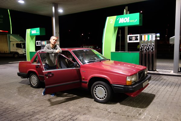 Persze, cseréltem... Gumikat... Rettenetes kínunkban feldobtunk két, 1998-as gyártású, régóta elfekvő Kumhót hátra. Mi több, a korai 740-esen elvileg 185/70 R14-es a méret. De a Vasfogon az addig hátul szolgáló 185/65-ös télik kerültek előre (ezek kisebbek a kelleténél), hátra viszont felment a két 195/70 R14-es Kumho, amik nagyobbak. Tiszta hotrod lett az öreg gép, csak remélni mertem, hogy nem szúr szemet a rendőröknek. Nem volt hirtelen más megoldás abban a két órában, amennyim volt a probléma orvoslására.