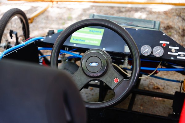 És itt azért megtudtuk, hogy egyáltalán nem könnyű egy ilyen kocsit irányítani. Szervo egyáltalán nincs, a kormánykerék átmérője pedig elég kicsi, ráadásul, féktávon durván beszitál. A második körben majdnem elvittem a korlátot a pálya szélén, szóval rendesen oda kell figyelni. Gyorsnak érezni, hiszen közel ülünk a földhöz, és nagyobb sebességnél reszketeg benyomást kelt a váz, közben pedig a két kisebb munkahenger hangosan lefúj, de olyan ütemben, mint egy bespeedezett gőzmozdony. A pneumobilok persze az építőik kezében tudnak igazán szédületeset menni, volt olyan befutó, ahol két ezred másodpercen múlt a győzelem. Például a Műszakik senior csapatának, és a Kakukktojás meccsén: