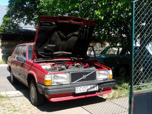 Tényleg így lett, csütörtök este, amikor egyszerre álltam neki fékbetétet cserélni a Foltoson (az állólámpás Mercim), mert már nagyon ideje volt, s végre tudtam egy biztos pótautót a hátam mögött, illetve áthívtam a sógoromat, hogy nyárira cseréljük a gumikat a Fabiáján, Gábor egyszer csak beállított a meggypiros 240-essel. Miközben megbeszéltük a Stromberg CD175-ös karburátor létjogosultságát a Volvókban és lét-nem-jogosultságát a Mercedesekben, illetve hogy minden volvós úgy gondol a 200-as, 700-as, 900-as szériákra, mint a traktorságuk ellenére bájos, szerethető tehenekre. Mire a megnyitott témák végére értünk, a hátsó fékekkel kész lettem (pedig jól berohadtak a betétrögzítő stiftek), az elsőkről kiderült, hogy egy mérettel kisebbek kellenek, Torjay Laci másnapra ígérte a cserét. Két rongy volt a csat, másnap reggel, munkába indulás előtt kicseréltem, csak a kartámaszos konzolt kellett kiszerelnem hozzá, tíz perc alatt megvolt. Jé, most már egyforma mindkettő!